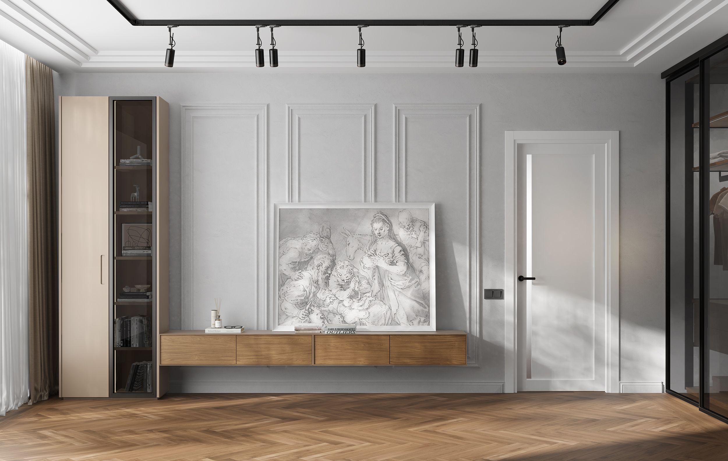 Раздвижная дверь вдоль стены