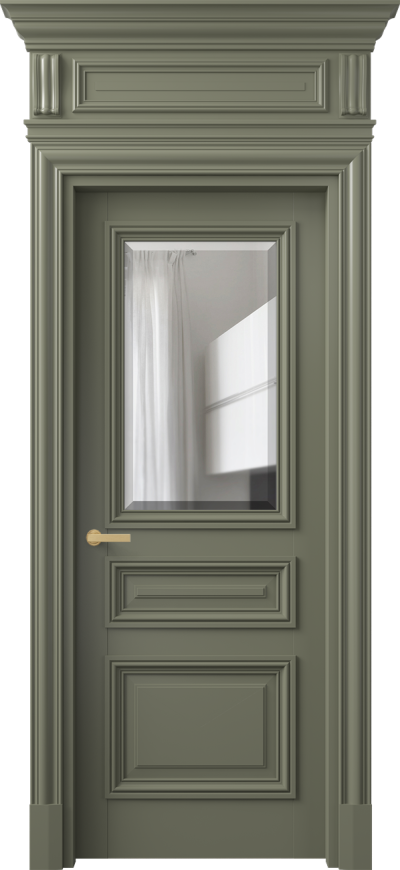 Антик 7304. Матовый оливковый тёмный Прозрачное стекло с фацетом